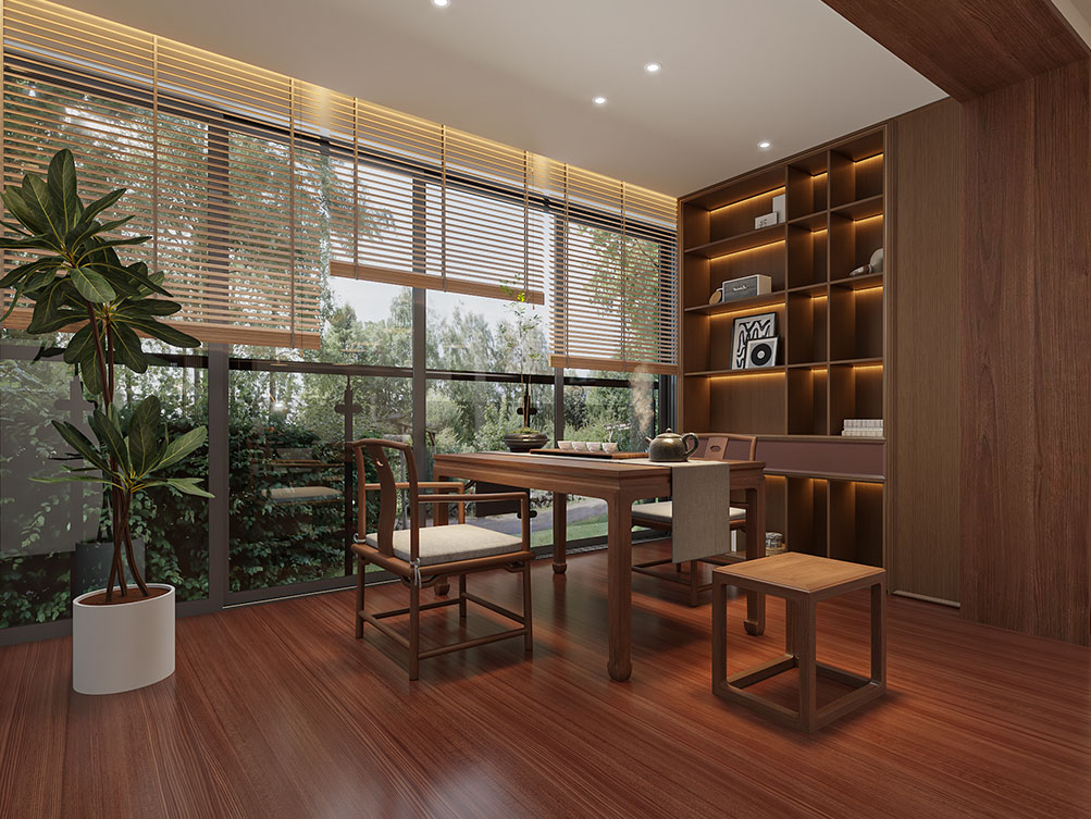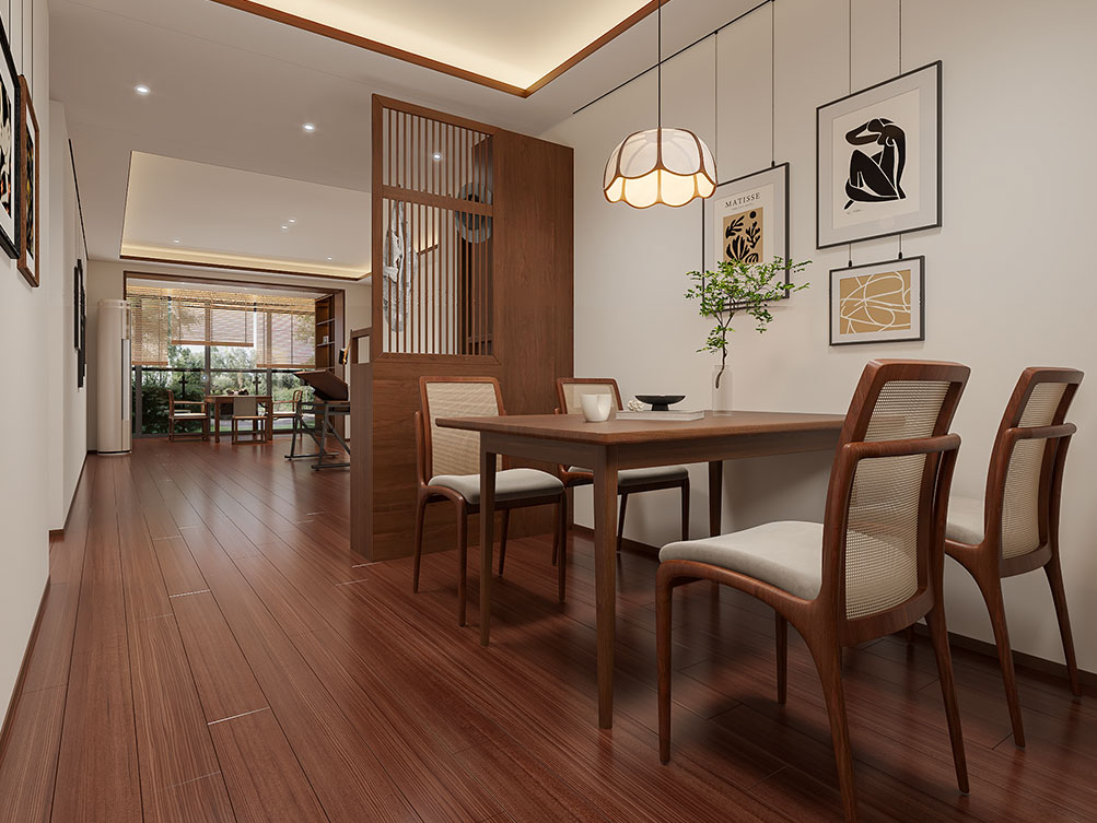 ??在濟(jì)南辦公室裝修公司中打造的家裝裝修,這套家裝中古風(fēng),以溫潤(rùn)木色為核心基調(diào):深棕木地板鋪陳出雅致底色,木質(zhì)格柵隔斷既劃分空間又保留通透感,藤編肌理餐椅搭配實(shí)木餐桌,柔和了硬朗線條結(jié)合辦公室裝修設(shè)計(jì)元素。暖光吊燈暈染出松弛氛圍,墻間藝術(shù)畫(huà)則融入現(xiàn)代質(zhì)感,讓傳統(tǒng)古韻與當(dāng)代舒適巧妙相融。從地面到軟裝的材質(zhì)呼應(yīng),既守住了中古風(fēng)的沉靜韻味,又用輕簡(jiǎn)設(shè)計(jì)避免了厚重感,恰好契合當(dāng)下辦公室裝修設(shè)計(jì)的松弛感居家的需求。