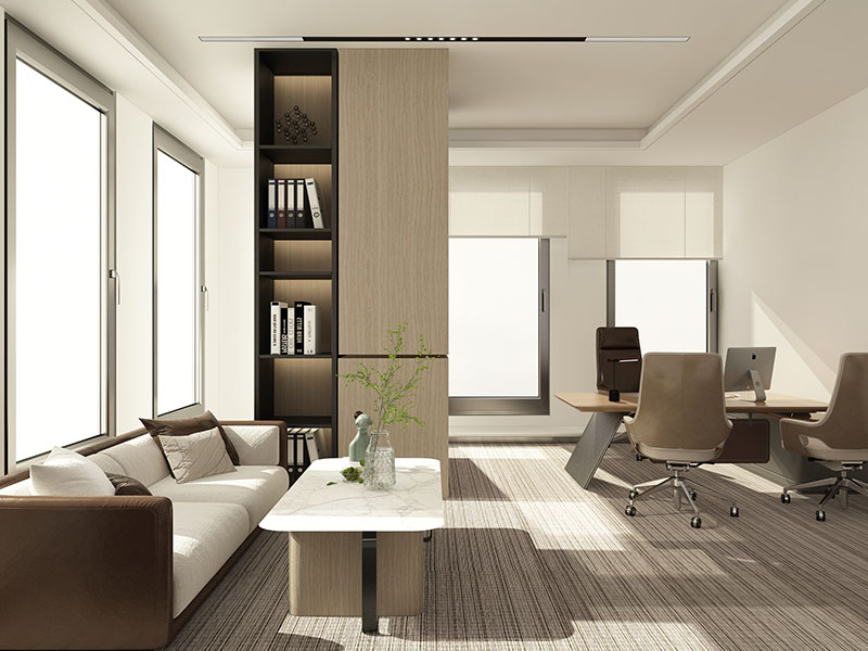少而精的藝術表達輕奢軟裝遵循 “少即是多” 的原則,以精致設計感為核心:家具選擇:辦公椅采用人體工學設計與質感面料結合,沙發(fā)選用造型簡約卻有線條感的款式,既保證實用性,又傳遞設計美學。配飾點綴:藝術感擺件、小型綠植、設計感書籍等,作為空間的 “點睛之筆”,不求數(shù)量繁多,只求與整體風格契合,提升空間的精致度與生命力。
